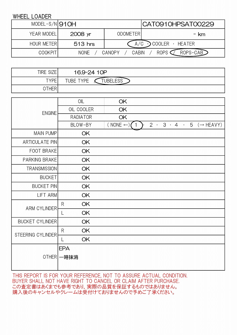 ROPS-CAB, 16.9-24 10P, AC, EPA, 一時抹消