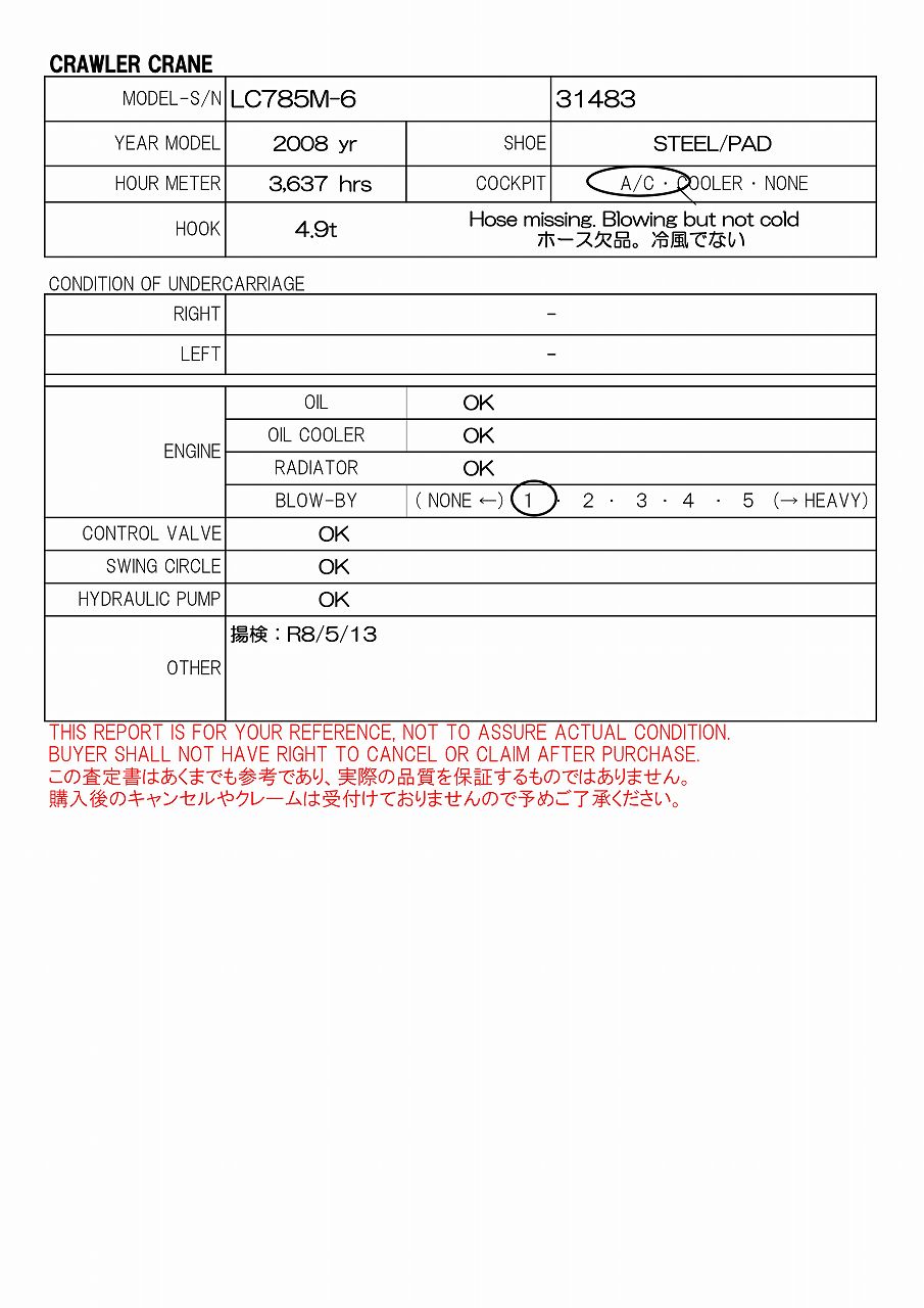 450G/PAD, 4.9t, 5 STAGES BOOM, AC, 揚検:R8/5/13
