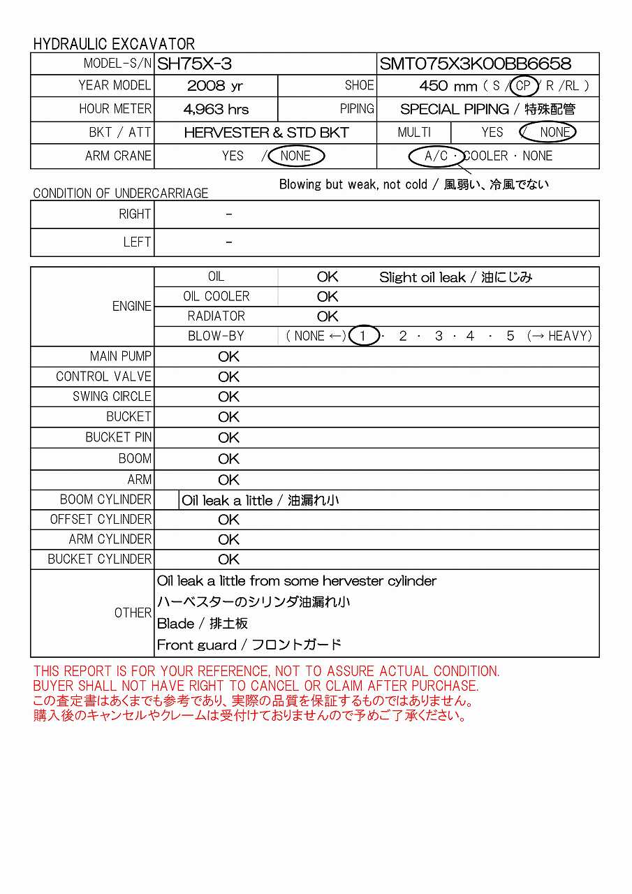 450G/PAD, SPECIAL PIPING, BLADE, SPECIAL LEVER, W/HARVESTER(KESLA20SH-KESLA20SH129) & STD BKT, FRONT GUARD, SIDE POLE, AC