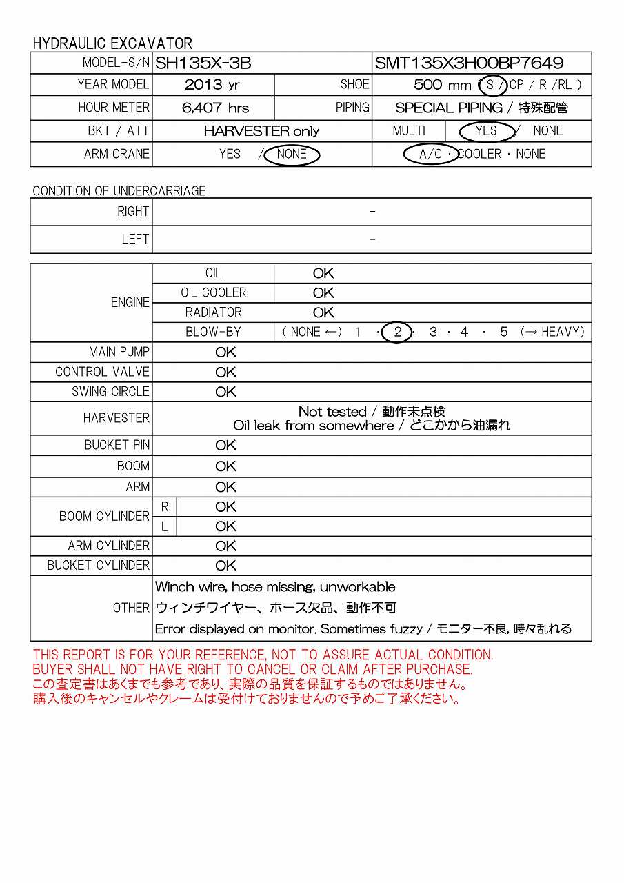 500G, SPECIAL PIPING, BLADE, FRONT GUARD, SPECIAL LEVER, W/WINCH(NO WIRE), W/PROCESSOR only, NO BKT, MULTI, AC