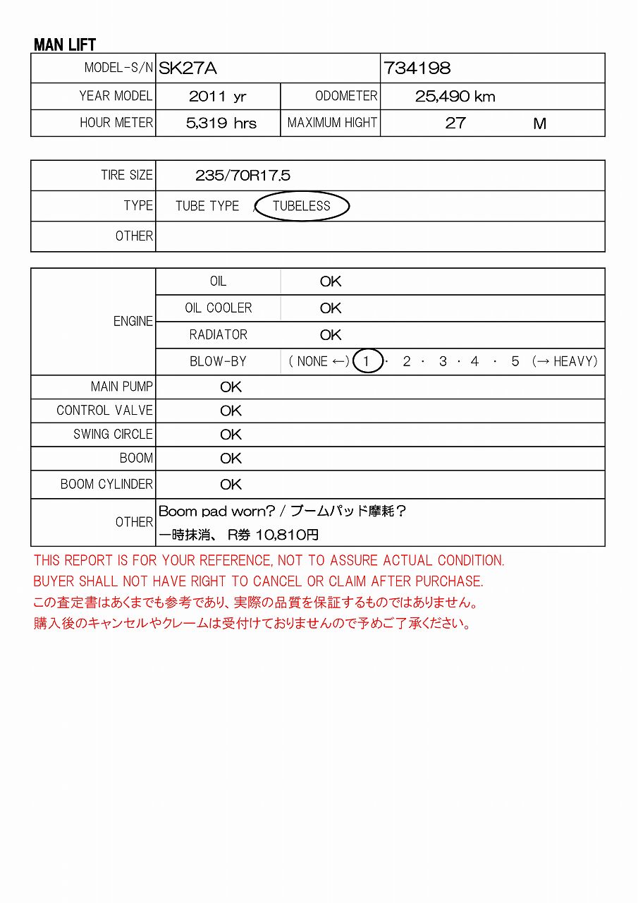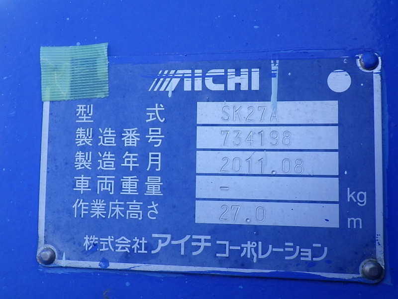AICHI MANLIFT 27m, 25.490km, MT, CHASSIS:HINO BDG-FC6JGWA-FC6JGW-12115, AC, 一時抹消, R券10,810円