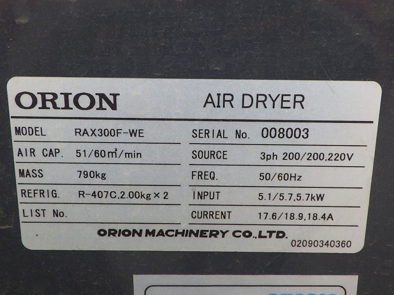 HITACHI SANKI COMPRESSOR, AIR ZEUS SDS-U, 0.93MPa, W/DRYER, (ORION RAX300F-WE-008003)